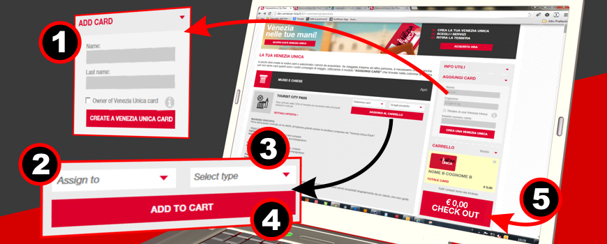 Digit your name and surname in the “Add Card” box on the right-hand column and 'create' your Venezia Unica card.