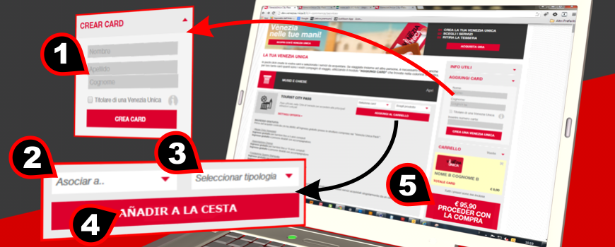 Introduzca su nombre y apellido en la casilla "Añada Tarjeta" de la columna de la derecha y cree su Tarjeta Venezia Unica