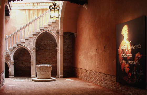 La « Maison de Carlo Goldoni » fut construite au XVe siècle et présente toutes les caractéristiques de l’architecture gothique vénitienne de cette période. Outre la façade bigéminée donnant sur le canal, son entrée depuis Calle dei Nomboli, côté cour, avec l’escalier externe à deux rampes et le parapet en colonnes de pierre d’Istrie est particulièrement intéressante. Appartenant à la famille Rizzo, cette demeure fut par la suite louée par la famille Centanni ; ce fut alors (XVIe siècle) qu’elle abrita une florissante académie artistico-littéraire. Vers la fin du XVIIe siècle, le grand-père paternel de Carlo Goldoni, Carlo Alessandro, notaire originaire de la ville de Modène, s'y établit. La famille Goldoni resta dans cette maison, où Carlo vit le jour le 25 février 1707, et y demeura jusqu’en 1719. Puis, en 1914, Aldo Ravà, grand érudit vénitien du XVIIIe siècle, acheta, avec le Comte Piero Foscari et le « Commendatore » Antonio Pellegrini, le palais à sa dernière propriétaire, la Comtesse Ida Manassero Camozzo ; leur idée était d’en faire une structure muséale consacrée, en honneur du grand auteur de comédies, à l’ensemble de l’art dramatique italien. Le projet fut interrompu à cause de la guerre et, en 1931, le palais Ca’ Centanni fut donné à la Mairie de Venise, pour qu'elle le restaure et y aménage un musée Goldoni et un centre d’études théâtrales. La Seconde Guerre Mondiale ralentit les travaux de rénovation, qui ne furent achevés qu’en 1953. Au mois de juin de cette même année, la Maison de Goldoni fut ouverte au public, abritant un petit musée Goldoni et des souvenirs théâtraux vénitiens : son activité se concentre surtout sur le Centre d’Etudes et l’enrichissement continu de sa bibliothèque et de ses archives.
