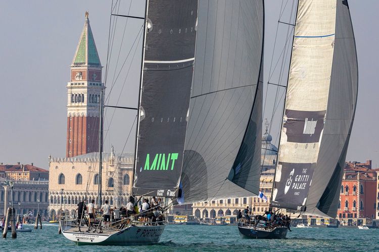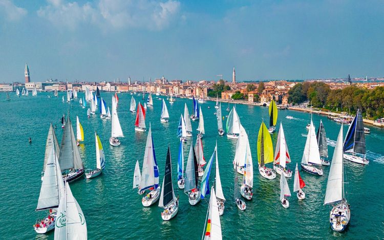 La Veleziana, classica regata organizzata dalla Compagnia della Vela, si snoda su un percorso che parte dal mare davanti al Lido di Venezia e si conclude in laguna davanti a piazza San Marco